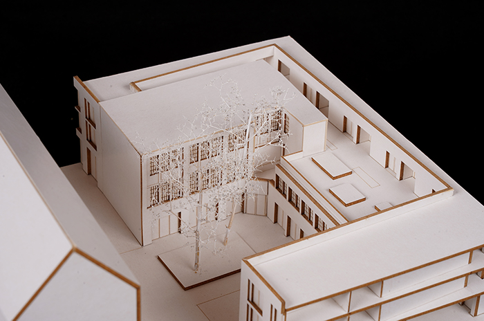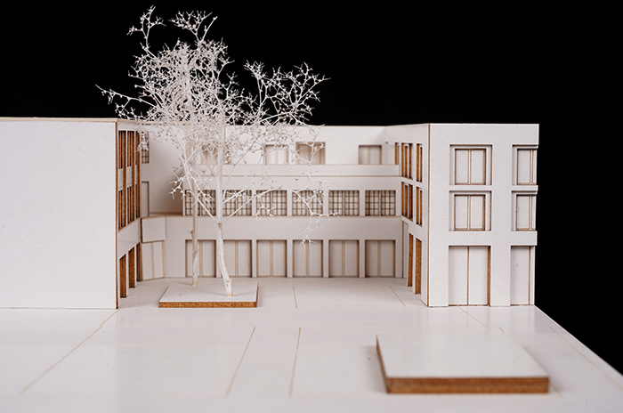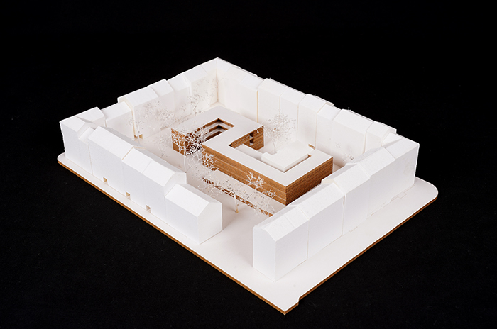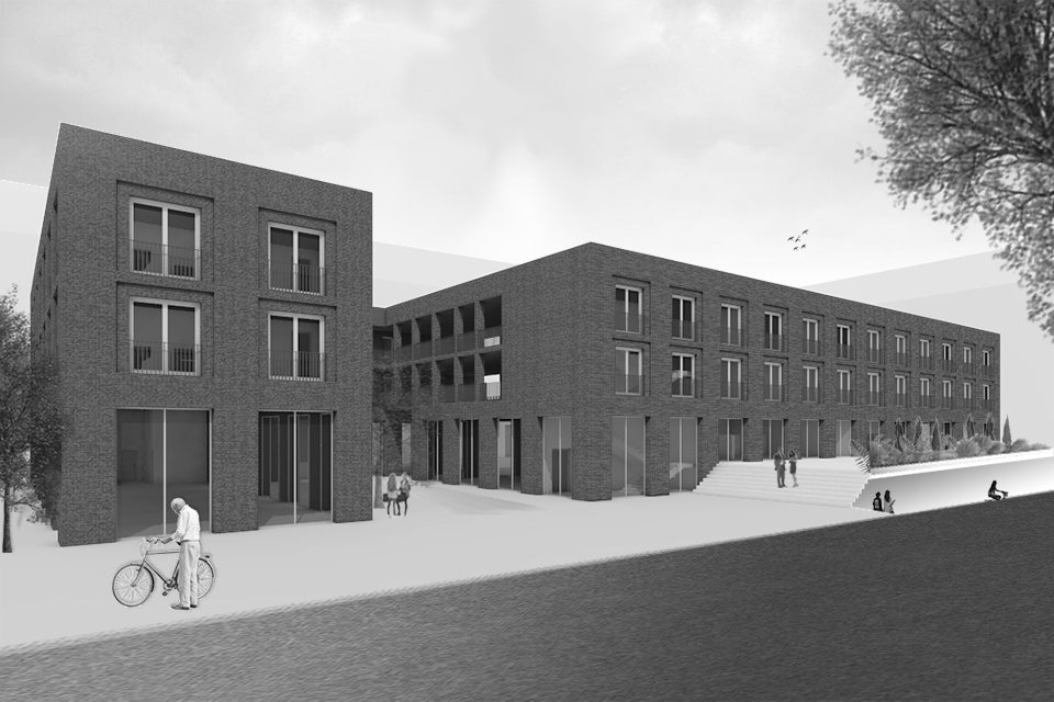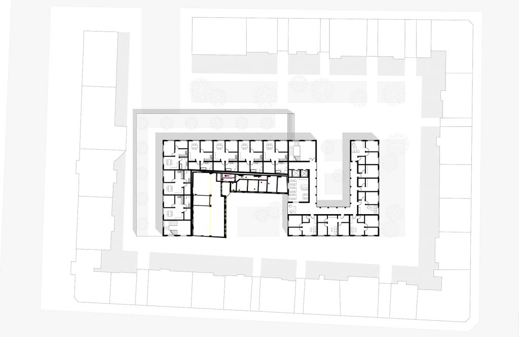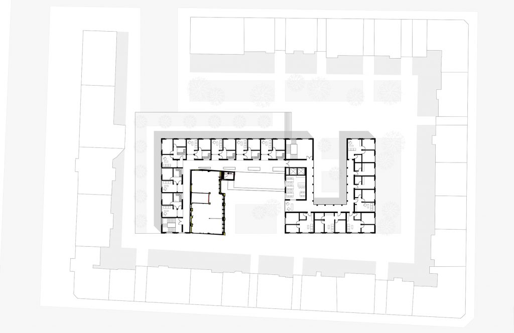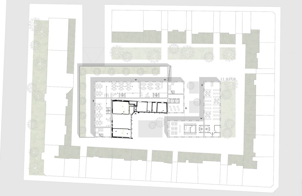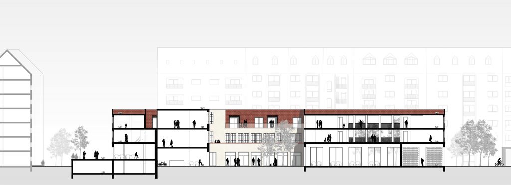 Deutschen Metropolen fehlt Wohnraum und die Bekämpfung des „Platzproblems“ wird in vielen deutschen Städten zur Herausforderung. Dies zeigt sich auch in der rheinland-pfälzischen Landeshauptstadt Mainz. Die Verteuerung des Wohnens beschleunigt weiter Phänomene der Gentrifizierung und verändert damit zugleich den Charakter dieser Wohnquartiere, ihre ursprüngliche soziale Durchmischung und ihre spezifischen Atmosphären. Maßnahmen der Innenentwicklung bzw. Nachverdichtung erschließen bislang mindergenutzte Blockinnenbereiche zentrumsnaher Wohnquartiere und schaffen Potenziale für neue Wohnformen. An diesen Orten sind häufig Überreste ehemaliger Industriegebäude oder kleinteilige Bebauung unterschiedlichster Nutzungen vorzufinden. Zudem ist ein Großteil der damit verbundenen Flächen versiegelt. Für die Boppstraße 42 in der Mainzer Neustadt und die dortige Blockrandbebauung sollte ein exemplarischer Lösungsansatz entwickelt werden. Das historische Gebäude des Ollohofs galt es in dieses Konzept zu integrieren. Für die Mainzer Neustadt wurde daraufhin ein blockübergreifendes Konzept erarbeitet: Die vorhandenen Blockränder sollen bereinigt werden und die Nutzungen in einen neuen Baukörper umgesiedelt werden. Denn es stellte sich heraus, dass die Flächen innerhalb der Blockrandbebauung durch einen einzigen prägnanten Baukörper am besten genutzt werden können, bei gleichzeitiger Steigerung der Wohnqualität. Der Entwurf lässt zudem die Entsiegelung von Freiflächen zu und es entsteht zusätzlicher Grünraum. Durch die Bündelung der unterschiedlichen Nutzungen in den einzelnen „Hotspots“ ergibt sich ein quartierübergreifendes Netzwerk aus Funktionen, welche als Anzugspunkt für die gesamte Mainzer Neustadt fungieren und einen Austausch sowie die Interaktion miteinander fördern. Das breite Spektrum an Nutzungen bildet ein Mehrwert für die Nachbarschaft und das soziale Miteinander und fördern zudem die Durchmischung.