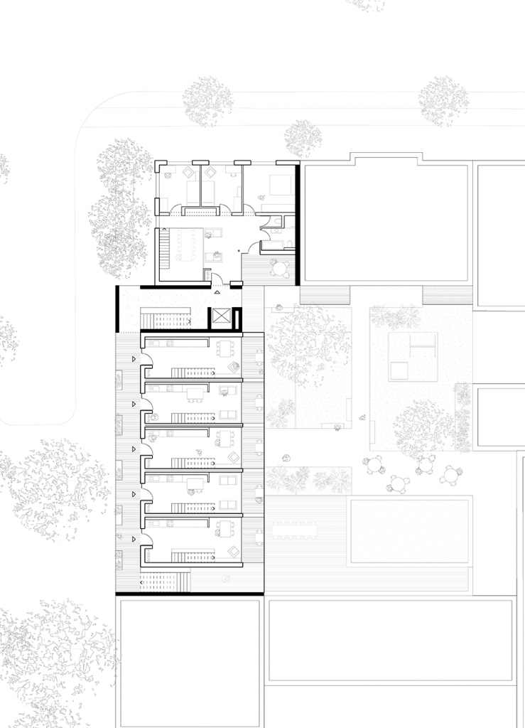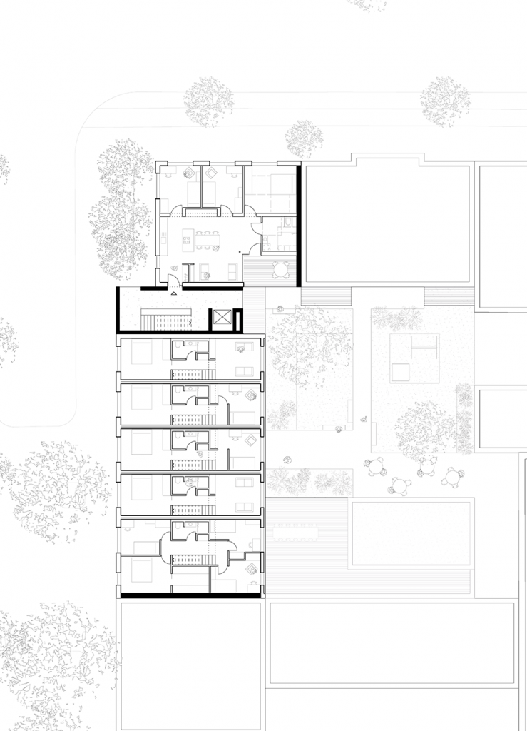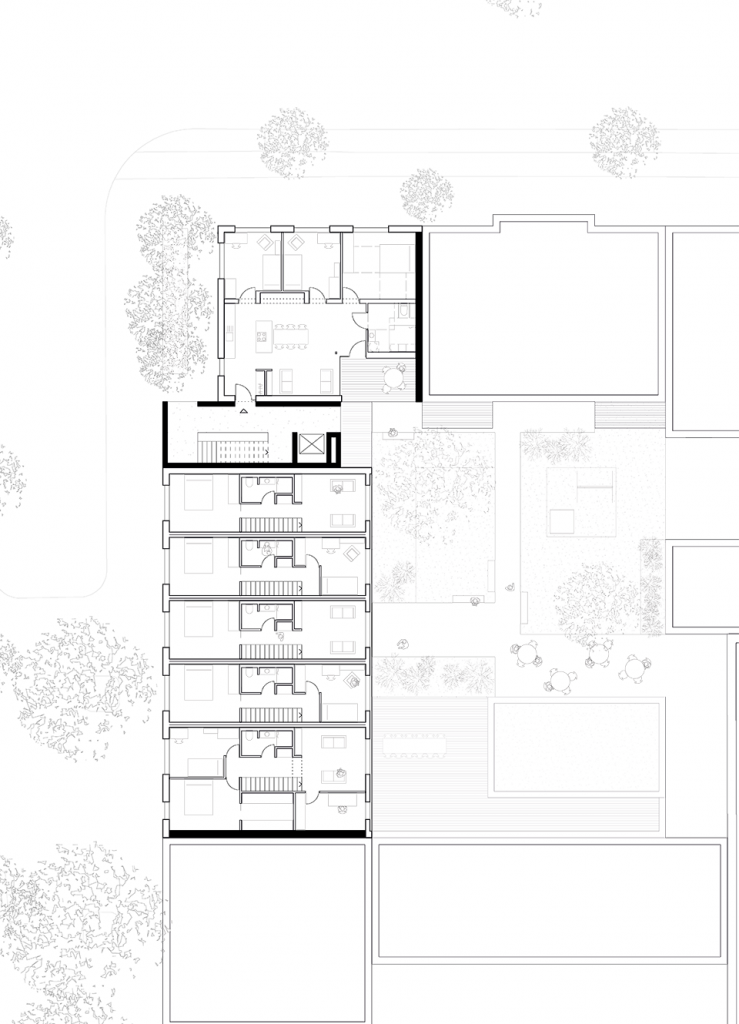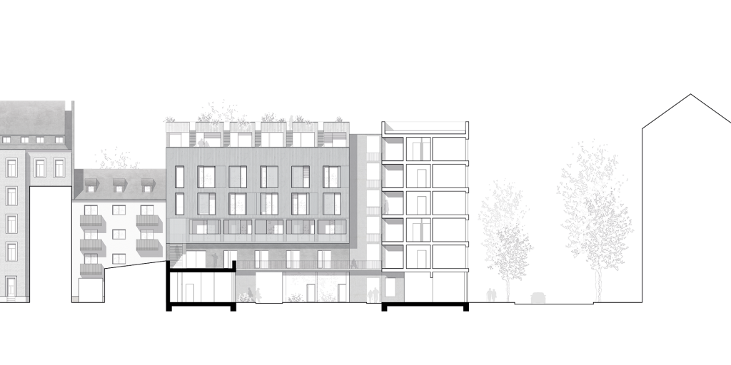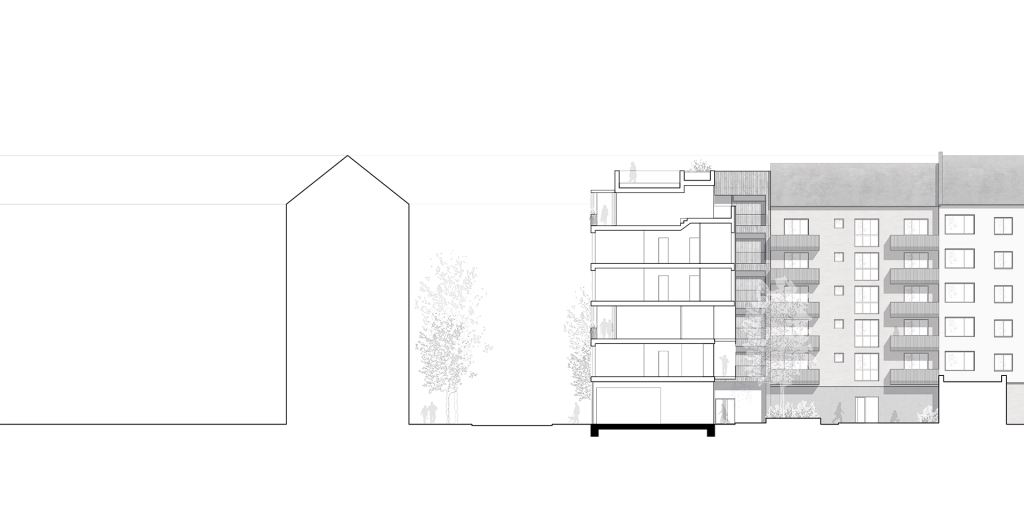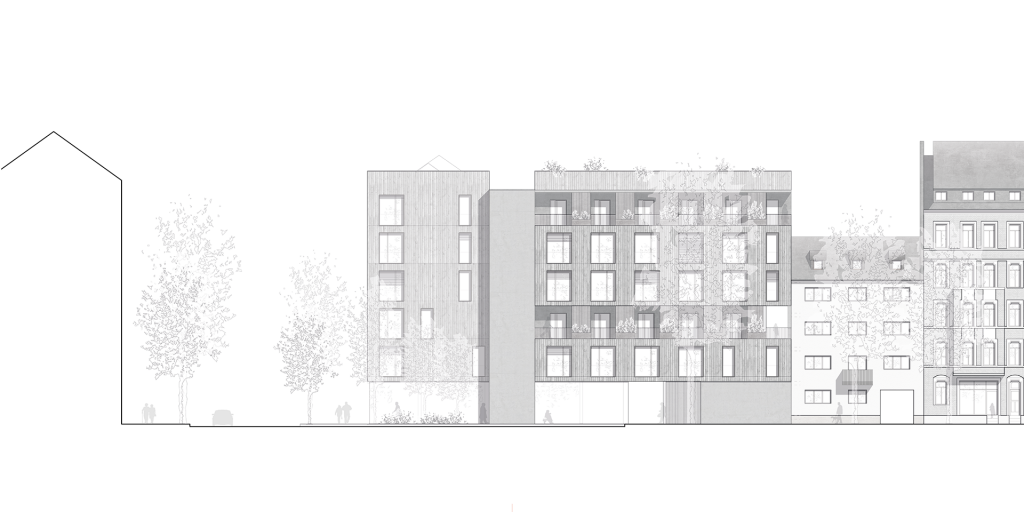 Die Masterthesis „STRATEGISCH GRÜN – Die Berücksichtigung der Primärkonstruktion im nachhaltigen Geschosswohnungsbau“ beschäftigt sich mit der Frage, wie durch die Auswahl möglichst klimafreundlicher Baustoffe in der Primärkonstruktion Energieverbräuche weiter reduziert werden können. Im Fokus stehen hierbei entsprechende Kriterien und Wirkungskategorien, die bei der Auswahl nachhaltiger, klimagerechter Baumaterialien unterstützen. Wie viele Regulierungen und Abkommen zum Klimaschutz greifen auch die bisherigen Bestrebungen zum klimafreundlichen Bauen häufig zu kurz. Ein innovatives Wohnkonzept beruht vielmehr auf einem Baukörper, der bereits aufgrund seiner Primärkonstruktion und Materialwahl möglichst nachhaltig ist. In dieser Arbeit sollte deshalb aufgezeigt werden, wie klimaschonende Baukörper nicht nur die aktuell gültigen Referenzwerte der Nutzungsphase einhalten können, sondern wie nachhaltige Architektur darüber hinaus die Energieaufwände und Emissionen für Herstellung und Nachnutzung möglichst gering halten kann. Ein Schwerpunkt wurde hierbei auf die Optimierungspotenziale der Baustoffe in der Primärkonstruktion gelegt. Dafür wurden folgende Kriterien und Wirkungskategorien als relevant für die Auswahl nachhaltiger, klimagerechter Baustoffe identifiziert: Rezyklierbarkeit & Kreislauffähigkeit, Langlebigkeit, graue Energie, Treibhauspotenzial, natürliche Rohstoffe und Transport. Sie dienen als Richtschnur für die Entwicklung eines „strategisch grünen“ Entwurfkonzepts. Anhand der erarbeiteten Bewertungsgrundlage wurden drei Fallbeispiele analysiert, während die daraus resultierenden Erkenntnisse in eine eigene Fallstudie – einem Geschosswohnungsbau in der Mainzer Neustadt – eingeflossen sind. Der innerstädtische Wohnbau wurde als „strategisch grüner“ Baukörper entworfen, der den sechs herausgearbeiteten Kriterien Rechnung trägt.