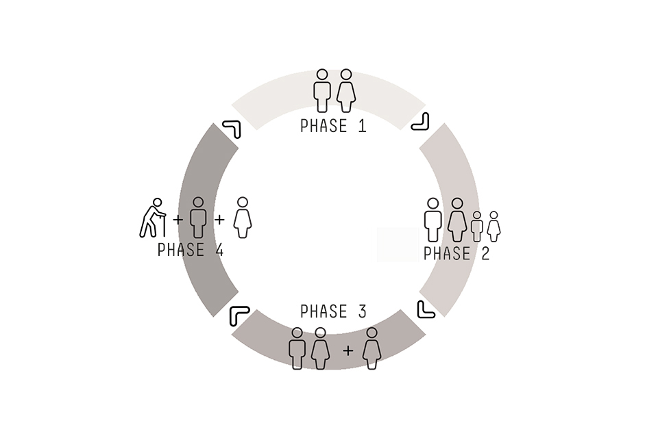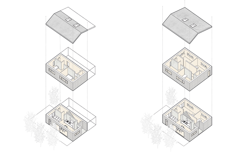 Der durchschnittliche Lebenszyklus eines konventionellen Einfamilienhauses sorgt vor allem in den ländlichen Regionen für große Probleme: Ein junges, alleinstehendes Paar baut für sich und seine Kinder ein Eigenheim, die Kinder werden erwachsen und ziehen aus. Nach dem Auszug der Kinder verfügen die Eltern über eine große Wohnfläche, die sie nach einiger Zeit auf Grund ihres Alters nicht mehr bewirtschaften können und ein Großteil des Hauses steht leer. Das Wachsmalhaus passt sich unterschiedlichen Lebenssituationen an und kann je nach Bedarf an- und umgebaut werden. Dies ermöglicht eine hohe Flexibilität der einzelnen Ausbauphasen und der damit zusammenhängenden Finanzierung, die somit schrittweise erfolgen kann. Als Ausgangssituation für den Entwurf dient das ortstypische Hunsrückhaus, das sich durch die Teilung von Wohngebäude und Scheune auszeichnet. Ein gemeinsames Dach erstreckt sich über beide Nutzungen und schafft so ein gesamtheitliches Bild. Das Startermodul des Familienhauses ist diesem Prinzip nachempfunden und ermöglicht durch die vorgehängte Holzfassade flexible und elastische Anbaumöglichkeiten.